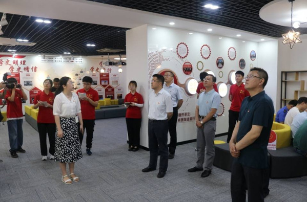 王志峰书记一行首先来到城际商圈楼宇阵地——智·创空间,参观了商圈“一站式”亲商服务阵地,详细了解商圈发展历程、品牌打造、流动党员管理、党史学习教育等情况,并观看了城际商圈党建工作宣传片,对商圈党委围绕“三聚三力”增强党组织凝聚力和战斗力的工作经验表示高度认可。