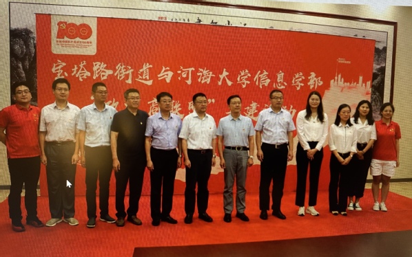 为了进一步深化betway西汉姆联信息学部党委与镇江市润州区宝塔路街道党工委的“政校商联盟”共建实效,7月14日,betway西汉姆联信息学部党委书记王志峰一行到宝塔路街道考察城际商圈党建工作情况。润州区委组织部常务副部长、一级主任科员徐文军,宝塔路街道党工委副书记、办事处主任高飞,润州团区委书记丁一舟等陪同调研。betway西汉姆联信息学部党委副书记刘春田、物联网工程学院副经理李臣明,betway西汉姆联党建引领乡村振兴师生支部实践团参加共建活动。