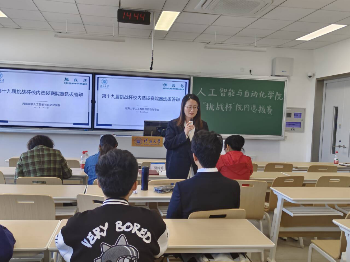 根据河海团发〔2024〕42号文件精神,2024年11月11日,学院在2号楼C214成功举办了第十九届“挑战杯”全国老员工课外学术科技作品竞赛院内选拔赛。此次活动由betway西汉姆联员工科协主办,betway西汉姆联团委书记贾婷婷老师、自动化系陈俊风老师、辅导员王珊老师及信息科学与工程学院吴伊若老师担任评委。